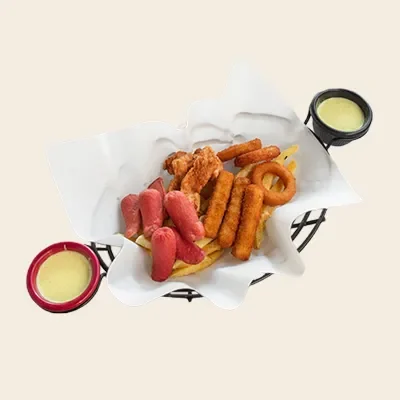 Patates kızartması, kaşar peyniri, marul, turşu, ketçap, mayonez, domates